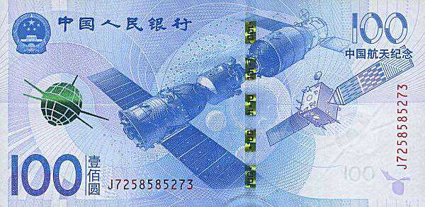 ❹2015年航天纪念钞,面值100元,发行量3亿,目前市场价接近面值;