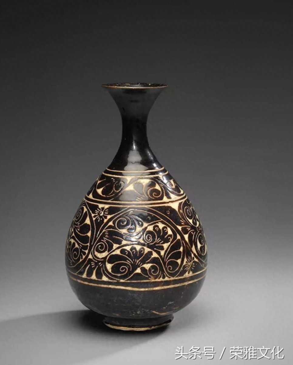 金磁州窑黑釉剔花卉纹玉壶春瓶。肯定有朋友会说,这个比喻一点也不贴切,典型的以偏概全。乾隆官窑的水准是非常非常高的,比它好的东西一抓一大把。每个人有每个人的品味嘛,在不同的井底,我们通过不同的视角看世界。