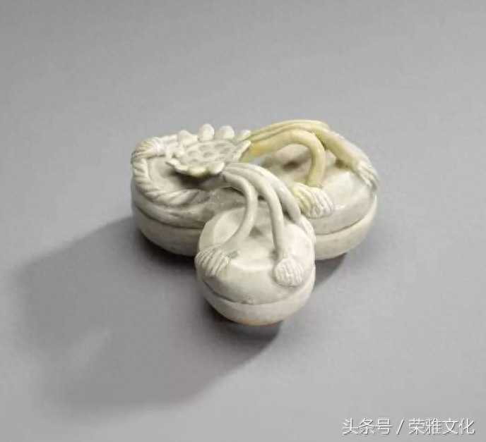 南宋青白釉莲藤三连盖盒。