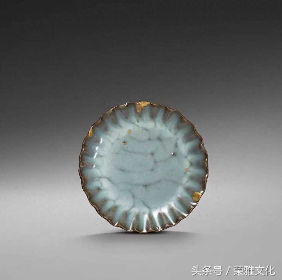 元-明初钧窑天青釉菊花口盘。