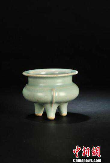 “翠色千年——福建民俗博物馆馆藏龙泉窑展”18日在东莞袁崇焕纪念园综合展厅开展。图为展出的宋代龙泉弦纹三足炉李映民摄