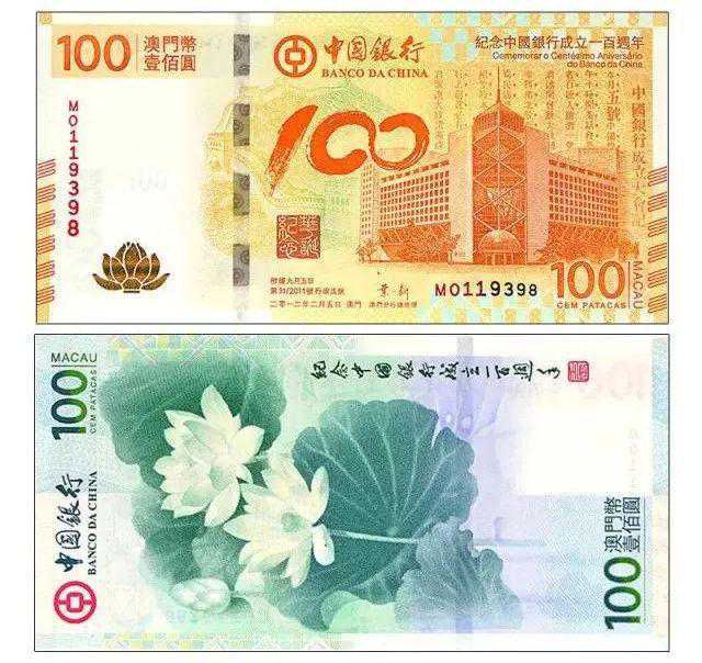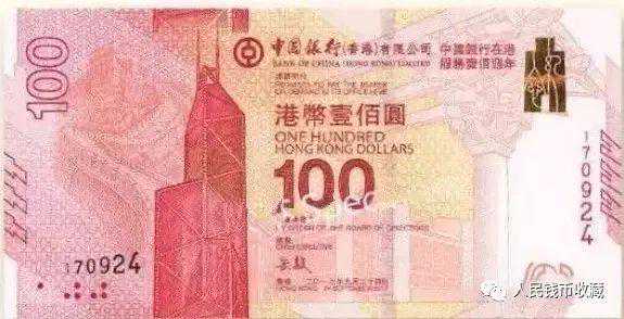 中银100纪念钞:中国银行香港分行发行,全称中国银行(香港)百年纪念钞,发行于2012年,发行量110万张。