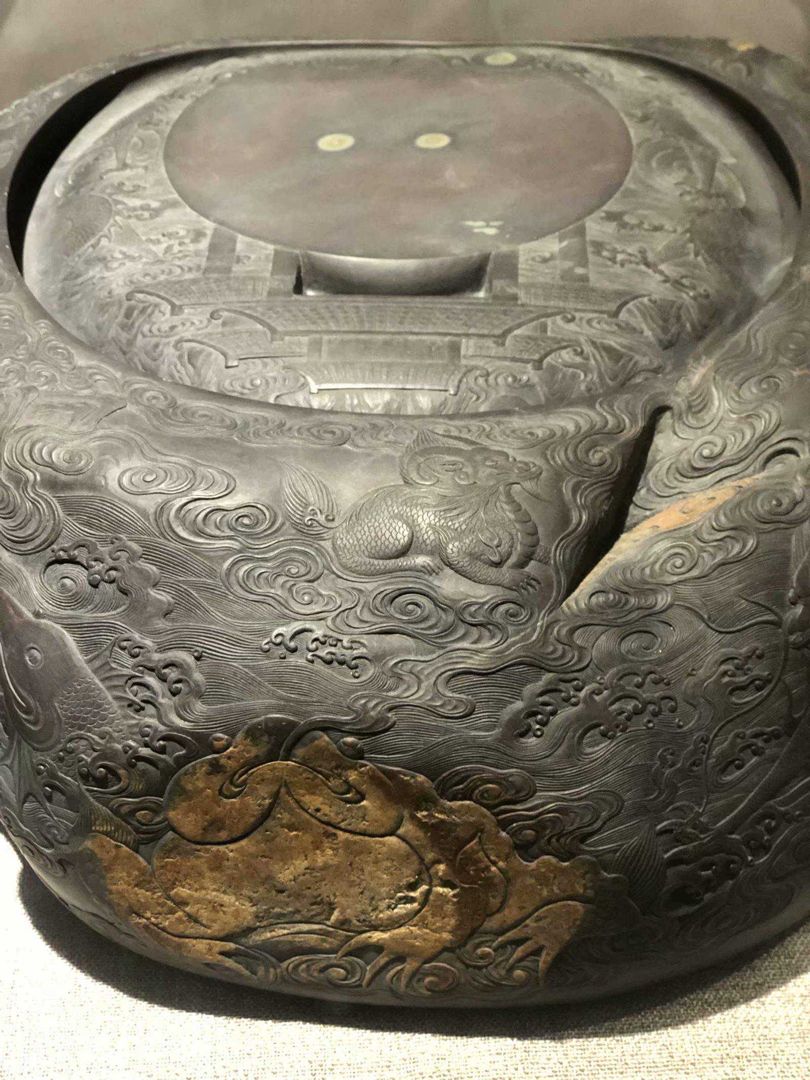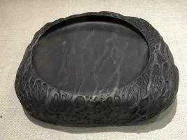 明代时,端砚做工巧借天工,风格端方厚重,纹饰更丰富精细,常见花鸟、鱼虫、山水、人物等具有象征性意义的题材,且形成镌刻砚铭的风气。此时由于端砚石开采多年,逐渐稀少,鉴赏和收藏端砚的风气愈盛。