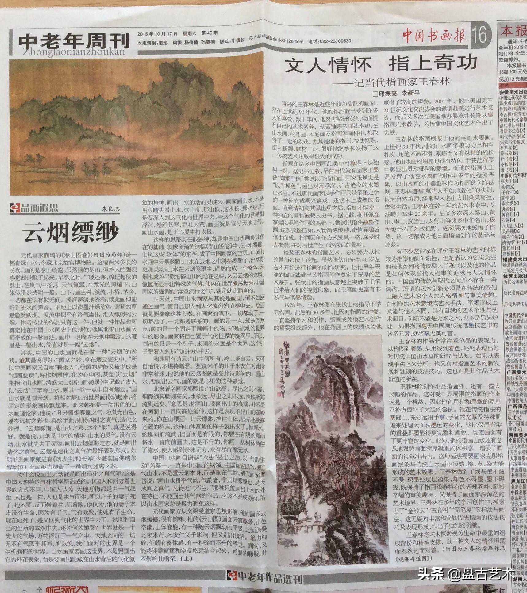 王春林的指画作品别有洞天,积墨山水,层层道染,画面精细入微。这与他常年坚持走写生之路是分不开的。他的脚步踏上过黄山、太行山、泰山、华山、武当山、崂山等等,目前看气势磅礴颇有仙气的崂山和绵延八百里的太行山是他画指画的首选。30多年来,王春林的指画在国际上多次获奖并被收藏,充分显示了指画大师王春林艺术风格的独特雅趣,艺劲深厚,具有非常强大的艺术生命力。