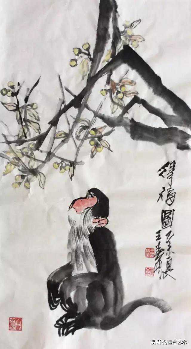 奉上王春林老师指墨山水画和画猴作中的逸品,敬请欣赏!
