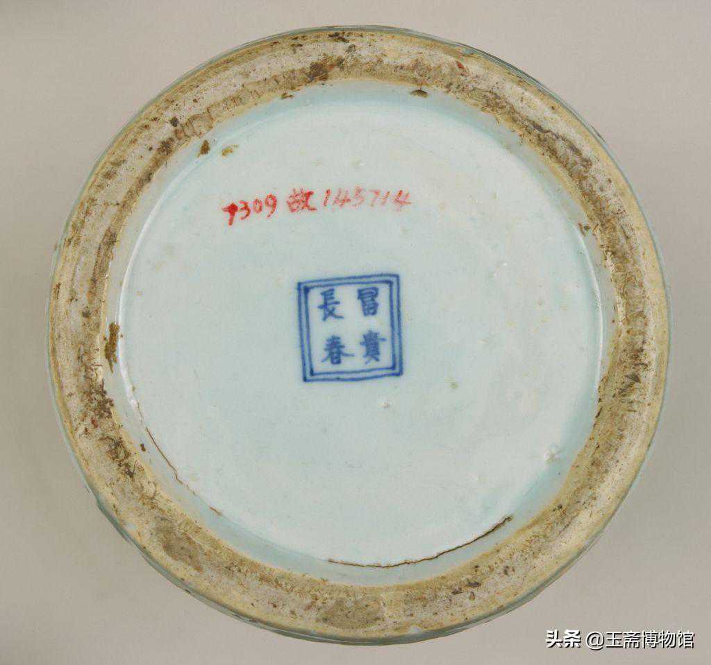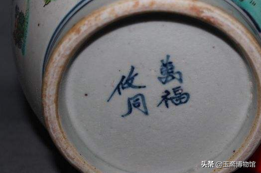 书写含有吉祥寓意的词句,民间青花瓷比较普遍。字体多为行草,潇洒飘逸,一气呵成。“富贵长春,福寿康宁、长命富贵、万福攸同”等语句表达人们对幸福生活的向往。这种落款形式,明代嘉靖、隆庆、万历三朝较为多见。
