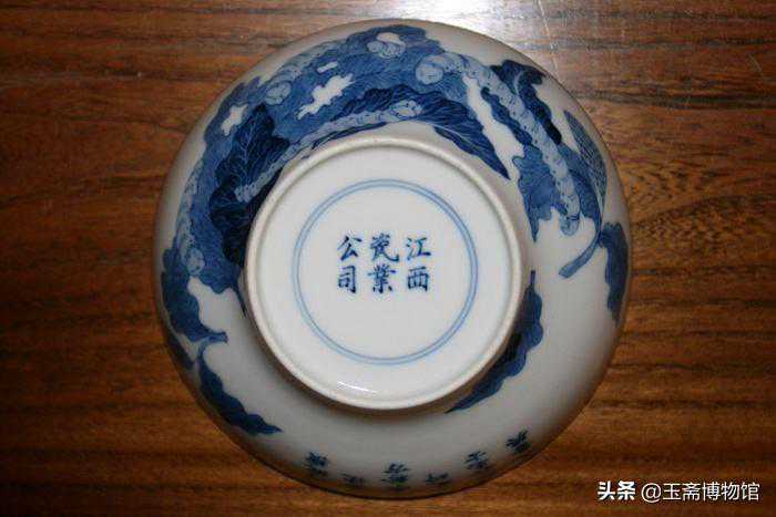 清代康熙款字体工整,青花料色明丽。雍正款楷书苍劲有力,格式讲究。乾隆、嘉庆、道光款多为篆体,字体排列紧密,犹如一枚篆印。近代款识中“江西瓷业公司”款较多,楷书秀逸,其中还有英文款识“CHINA”,是近代出口瓷的标志,是青花中最早使用的英文款。