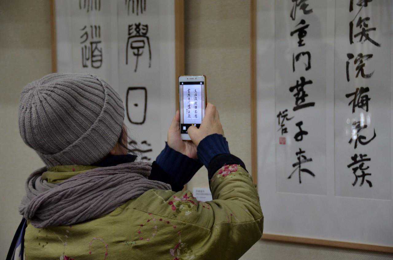I今天上午“平畴远风·吴悦石书房联书法作品展”在荣宝斋书法馆开幕。此次展览展出吴悦石先生书房联书法作品一百件,作品均系吴悦石先生今年创作的精品佳作,作品联句内容高雅、意境深远。作品书体多样,既有古穆朴厚的篆隶书,又有遒逸雅健的行草书。由荣宝斋出版社出版的《平畴远风·吴悦石书房联书法作品集》也同期出版发行。展览现场嘉宾云集,异常火爆,京城的各界名流、书画界同道前来祝贺并参观展览。