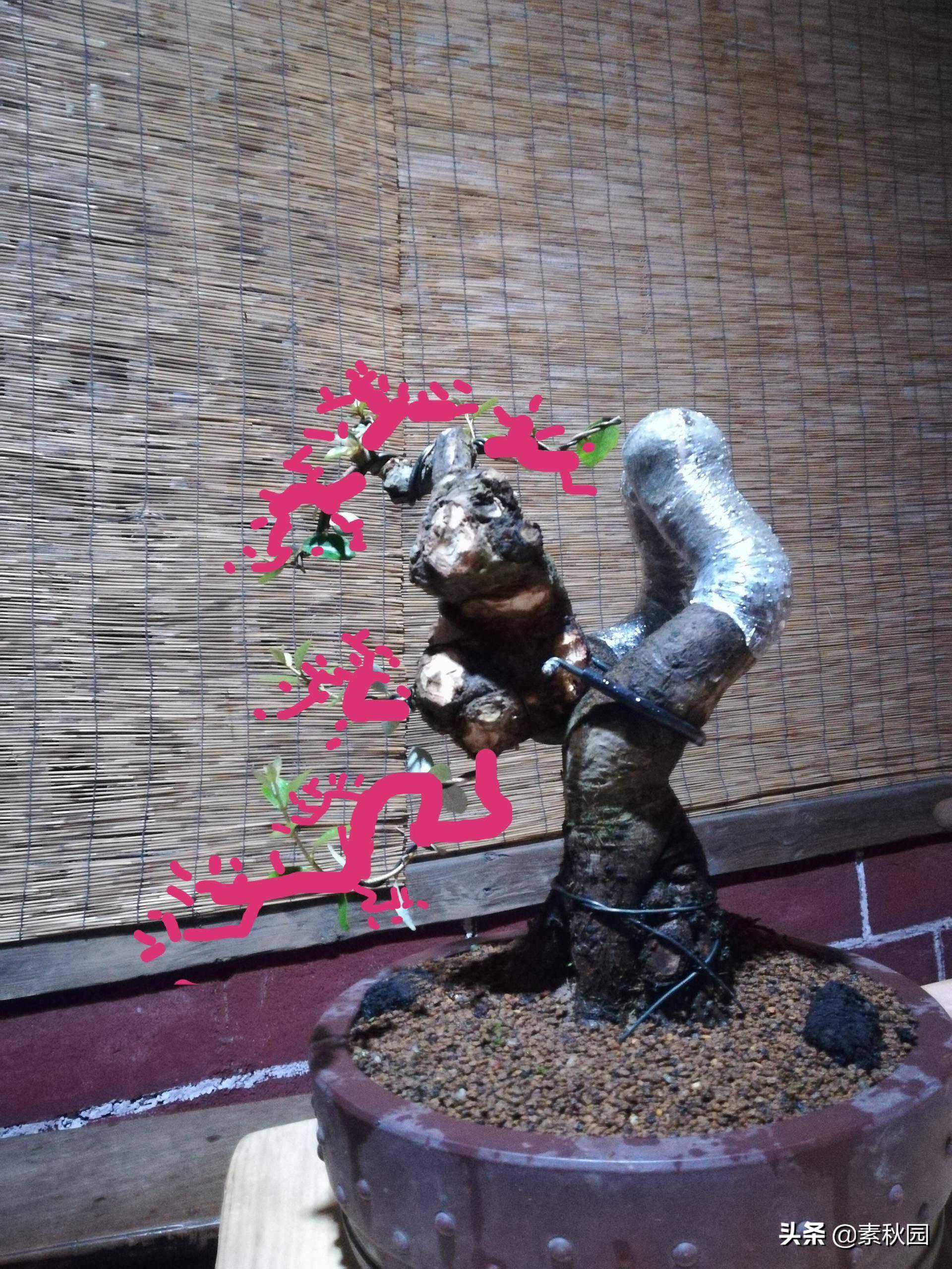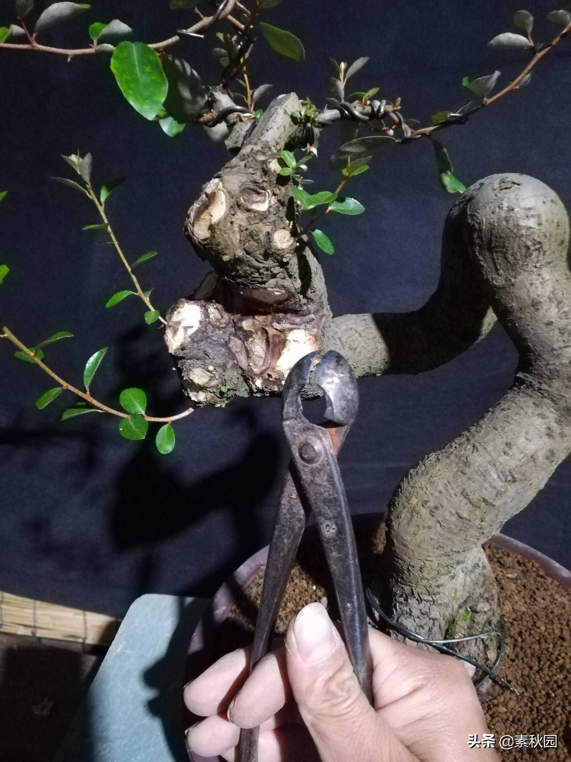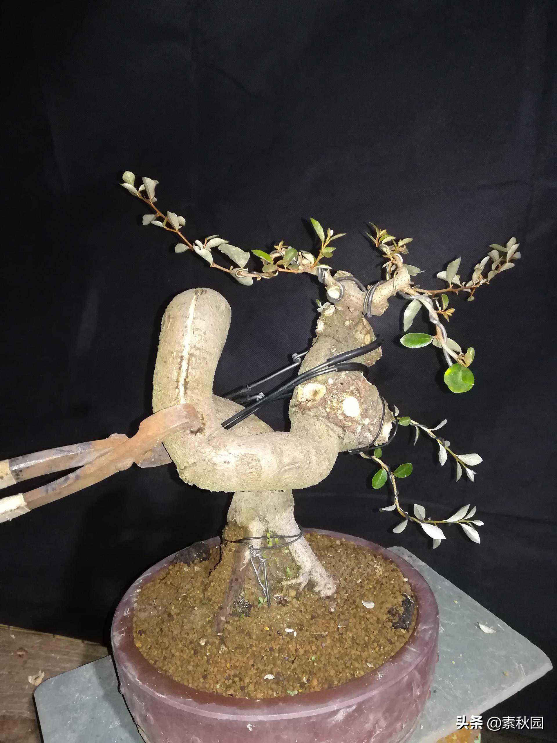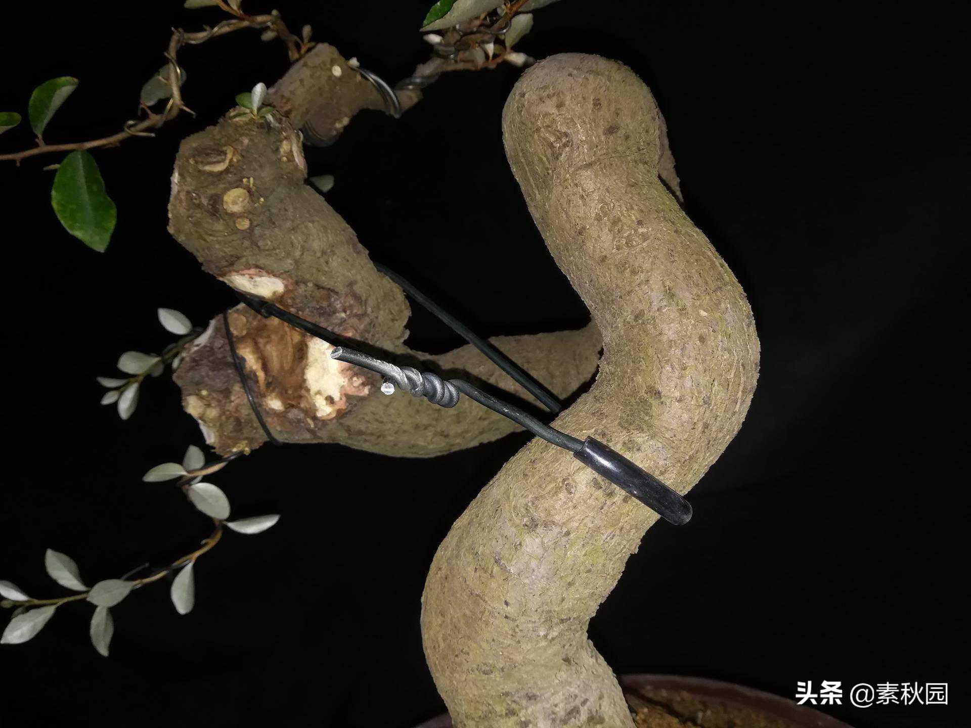 图文最重要的是分享破杆牵拉调形的一些经验,希望朋友们在制作盆景的过程中有需要用到这个技法的时候能够更好的掌握其中之要领。