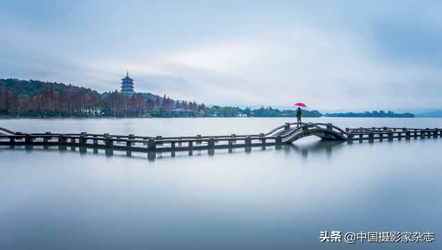 上图拍摄于杭州西湖的长桥景区,雨后的西湖雷锋塔,一个撑伞的少年在等他的爱人。天青色等烟雨而我在等你,是不是很有意境?当时,用到了一片ND1000,使水面更平滑,天空的云层更有动感。更重要的是三分钟曝光时间过滤掉了游人和游船,使画面更干净。这张还用了一片,压暗了天空的曝光。使天空和地面的曝光更均衡。有人可能会问,曝光三分钟,那个撑伞的就一直不动吗?当然不是,拍了两张,一张没有人的长曝光,一张有人的短曝光,后期再用蒙版把人擦出来。