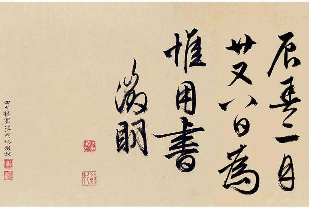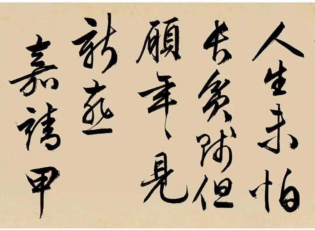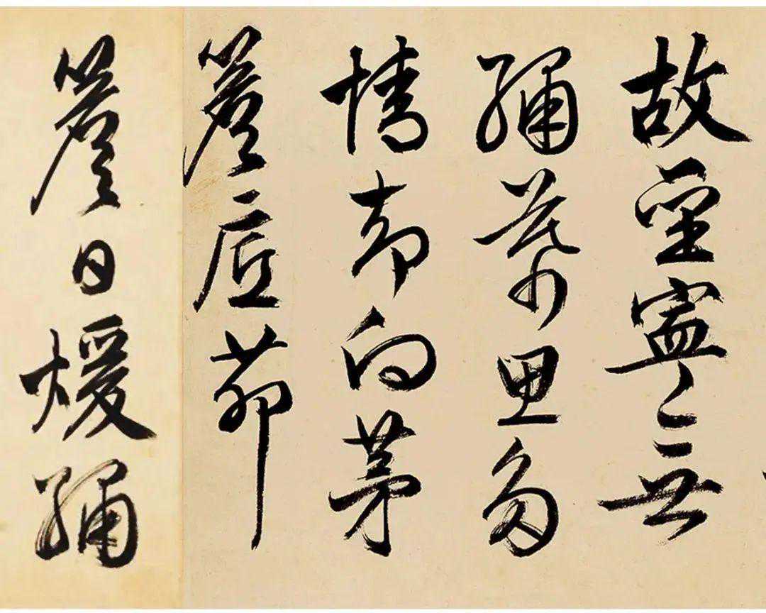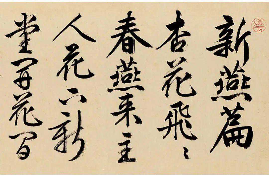 文徵明所绘也是一片江南春色。画中老树盘桓遒曲,枝杈参差,枝头桃花怒放,粉艳动人。花朵用胭脂加粉白调和,过度自然。花朵姿态万千,花朵间点点新绿,富有变化和层次。在粉红的时光中,春燕飞舞,或比翼双飞,或相对而鸣,使画面更富生机和活力。画面上粗细、动静之间的变化,构成画面结构的平衡感,笔墨若松动,结构则严谨,二者间的关系是相辅相成。