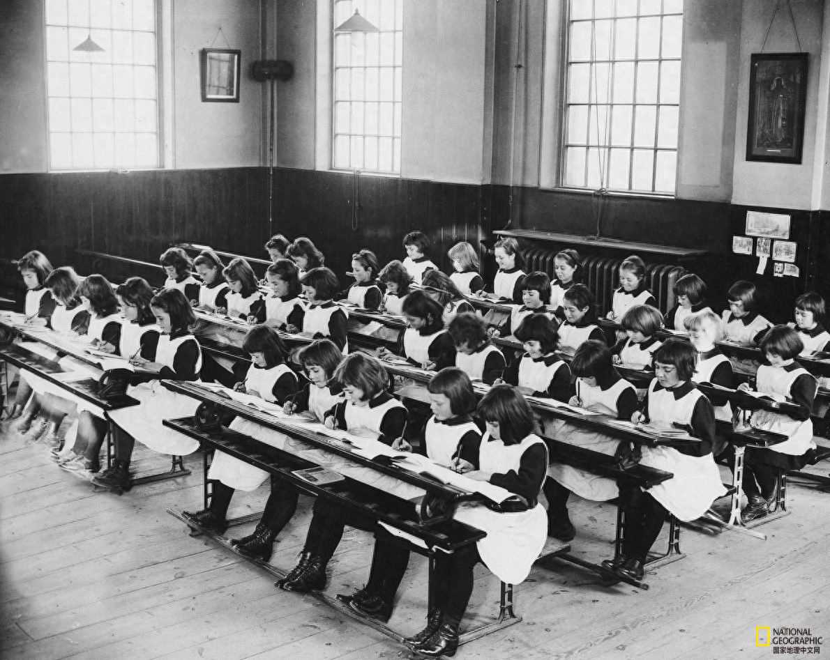1760年,育婴堂开始给孩子们提供接收证明;在此之前,关于把孩子托付给育婴堂的父母,没有任何书面记录。由于很多父母不识字,他们无法留下便条或书面声明作为标识。婴儿的身份只能通过“铭牌”上的数字进行分辨,铭牌上面注明了孩子的年龄、性别、服装和辨别特征。图:育婴堂里的女孩们坐在一排排座位上,专心学习。供图:THEFOUNDLINGMUSEUM