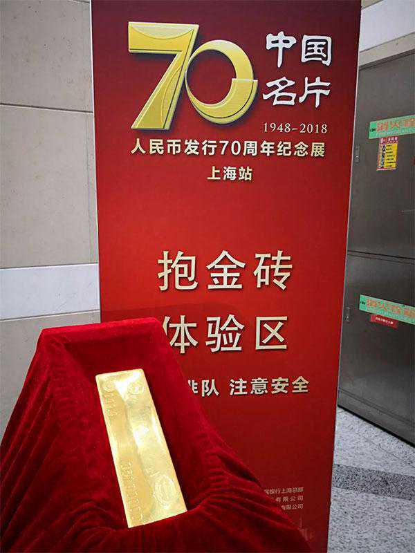 最后,货真价实的金砖出场了。12.5公斤标准金锭,按照现在的金价,大概350万元,“一室一厅”的外号不是盖的。好在今天人不多,参观者如愿以偿,依次“抱金砖”欢乐留影。刚想伸出一只手去接,工作人员赶忙喊“两只手,两只手”。果然好沉。