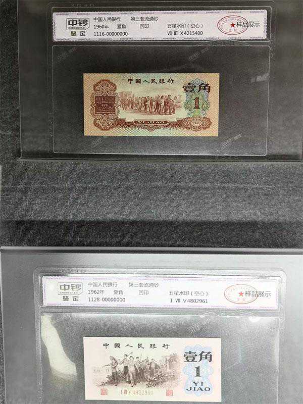 第三套里还有著名的枣红“壹角”,当时正值三年自然灾害,为了节约印刷成本,改为背绿“壹角”。对比一下,大小确实不一样。