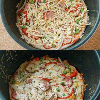 3、▪️电饭锅内胆抹一层橄榄油(后期方便取出),放入披萨,按下煮饭键,工作时间约30分钟左右出炉。