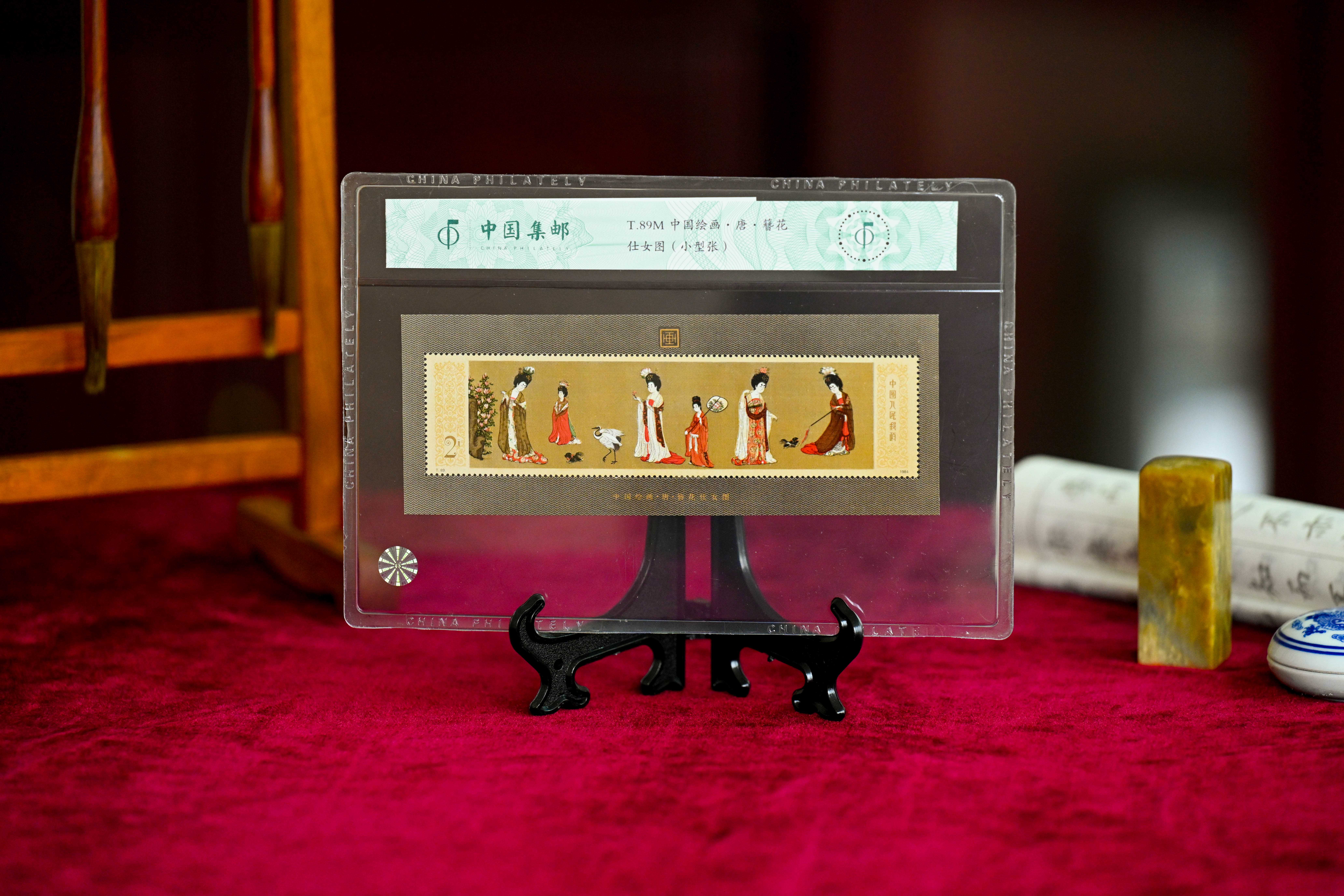 共鸣,是会心的微笑,是把邮票指给儿女或孙辈时悠长的回味。是讲“想当年”时,那嘴角扬起的自豪。我时不时地会拿2009年发行的《唐诗三百首》邮票向孩子们展示,告诉他们这套邮票用到了檀香油墨、荧光油墨、金光幻彩珠光油墨、微缩雕刻、多媒体技术等,可视、可听、可触、可闻,用高倍放大镜看那极微小的一句句唐诗依然十分清晰。虽然印制工艺是设计、印制、发行管理部门共同研究确定的,可我依然以“我知道有哪些特殊工艺”而自得,也体会到了设计家与古代诗人的共鸣。