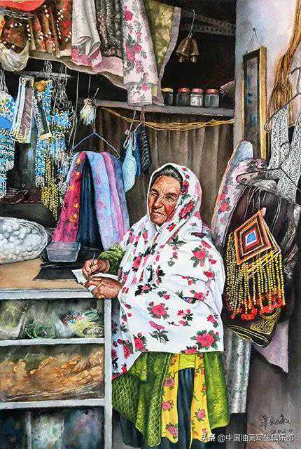 韦劲敏(香港)《小店東主》水彩38x56cm2020年