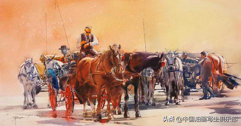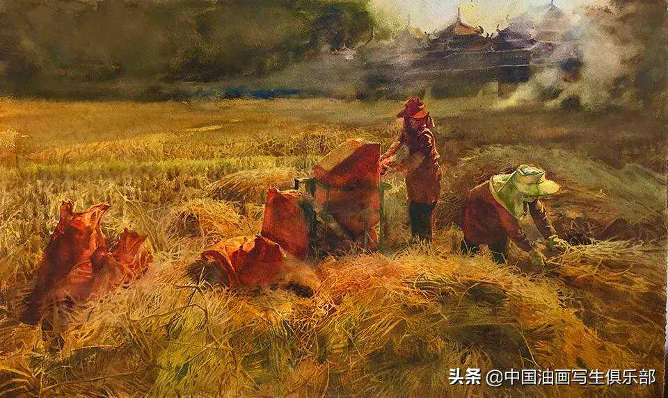 胡巧玲《匠心铸魂》水彩53x76cm2021年