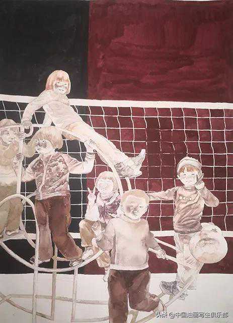 柳显秀、邓霖《玩伴》水彩75x105cm