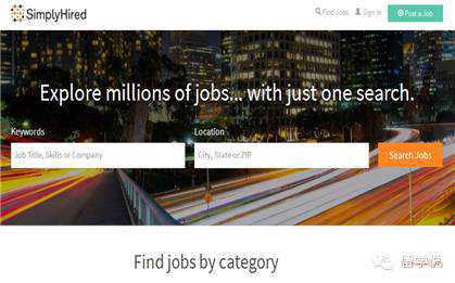 SimplyHired把各种顶级资源、内容网站、报纸、机构和公司招聘网页,加以整合并一体化,为求职者提供一站式温馨服务。求职者既可按职位类别泛泛浏览,又可按地点、职位类型、对学历和工作经验的要求,缩小搜索范围。其使命是打造最好的搜索引擎,让用户以最简便、最有效的方式找到最理想的工作。