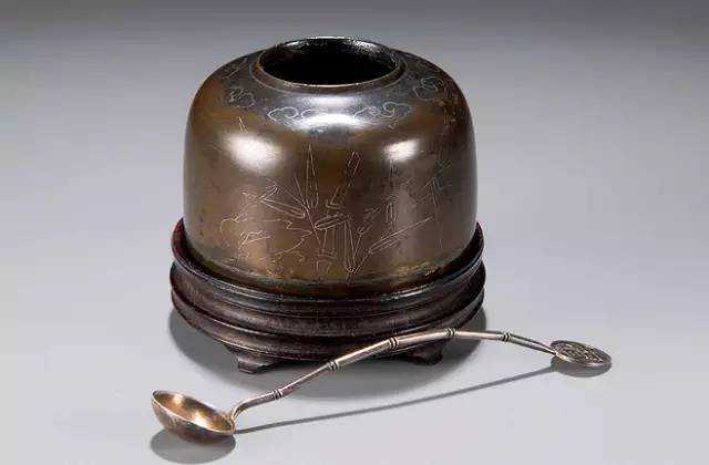 △【明】嵌银水盂、银勺