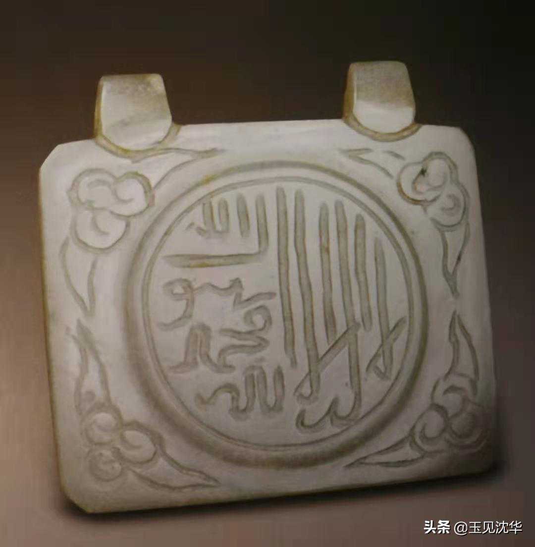 白玉幻方:长方形,上有两贯耳,一面阴刻可兰经文,另一面刻十六方格,每格填一阿拉伯数码字,每直、横、斜行数字和均相等。