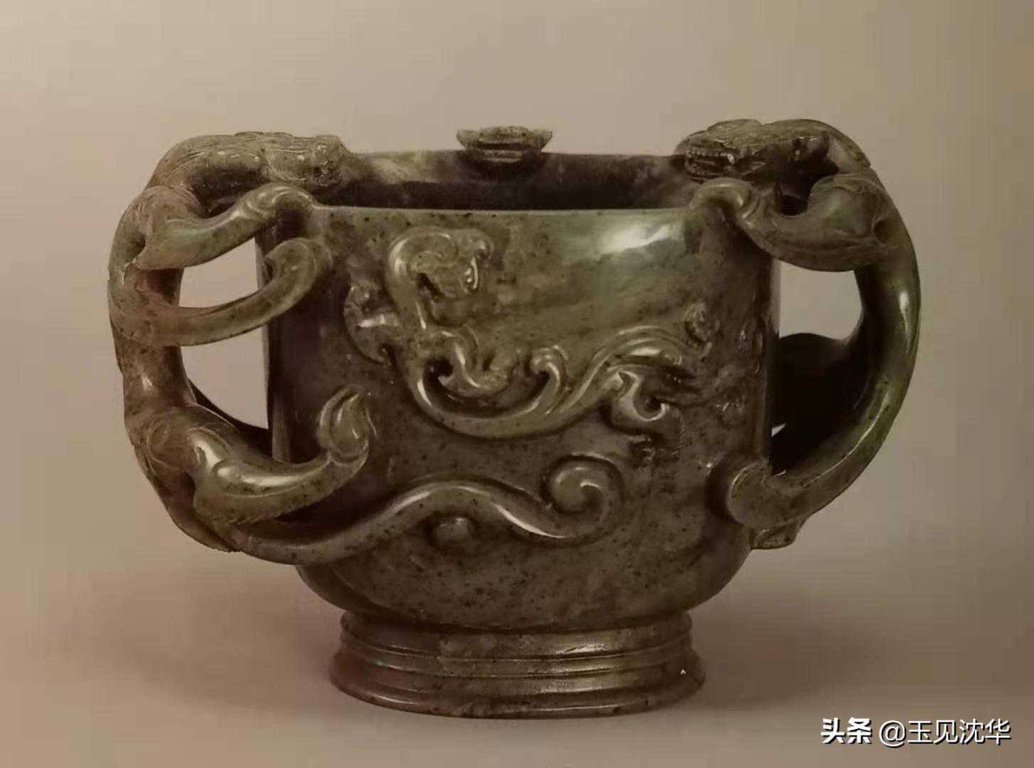 青玉云纹螭耳匝也是托古而制的陈设。