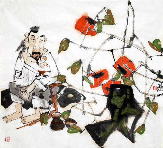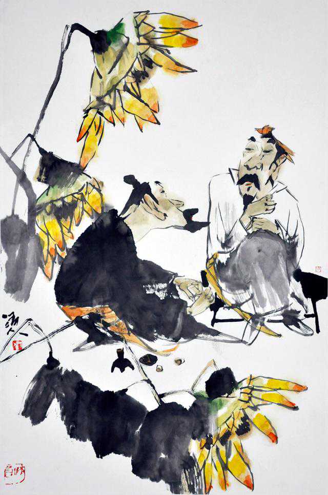 葵荫闲聊图2尺寸:70x56cm