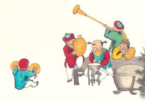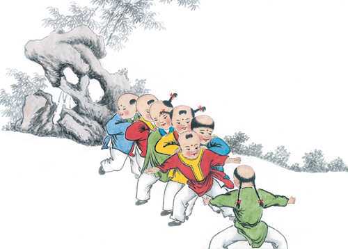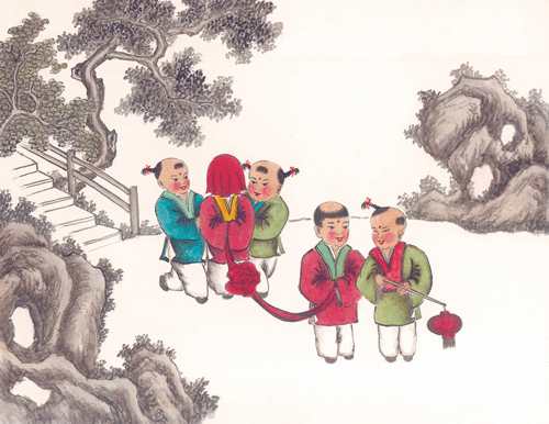 本图集大多精选李伯实先生所绘《百子图》,整幅画卷充满了喜庆、祥和的气氛。以春、夏、秋、冬四季的交替,活灵活现地描绘出孩童稚趣的心理和天真可爱的象貌。