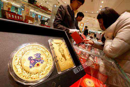 法制晚报·看法新闻(记者蒲长廷)今天上午,记者来到2018年狗年生肖章的首发公司菜百总店,已经有不少顾客前来咨询购买。一枚重达一公斤的狗年生肖金章引来不少顾客驻足,该金章售价34.5万元。
