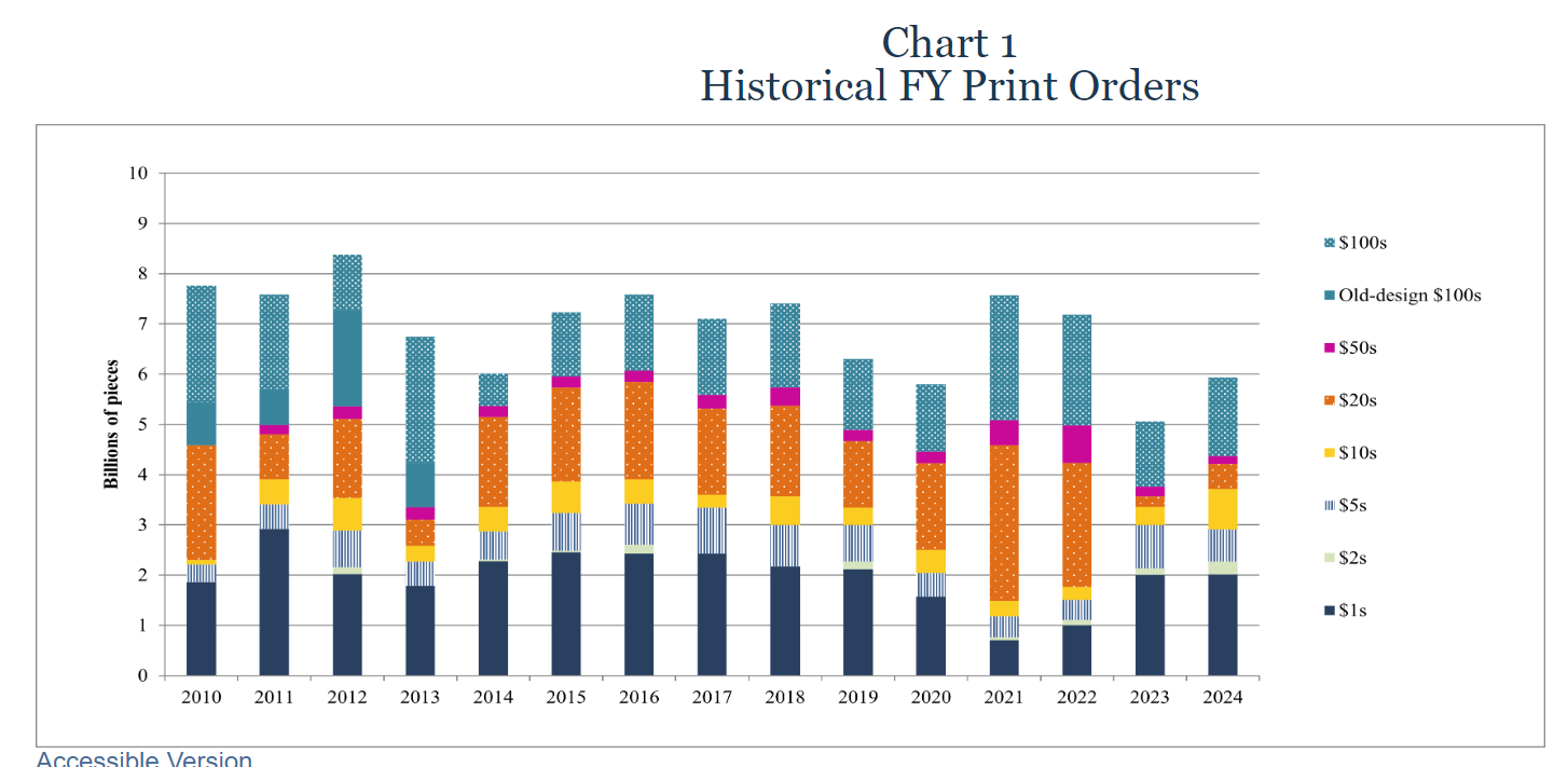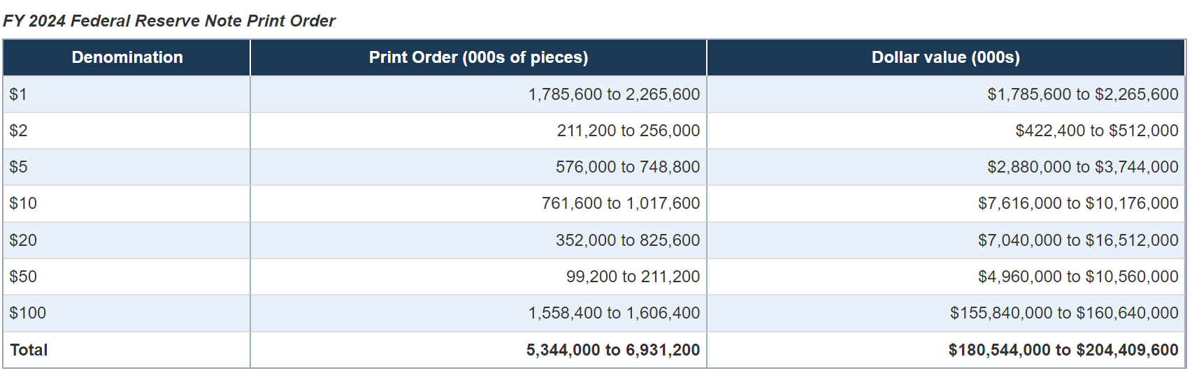 但根据美国雕刻与印刷局公布的钞票数据看,2023年美钞生产量下降到仅有57亿张,2024年的生产计划仅有53亿张,现金似乎也没有以前吃香了。