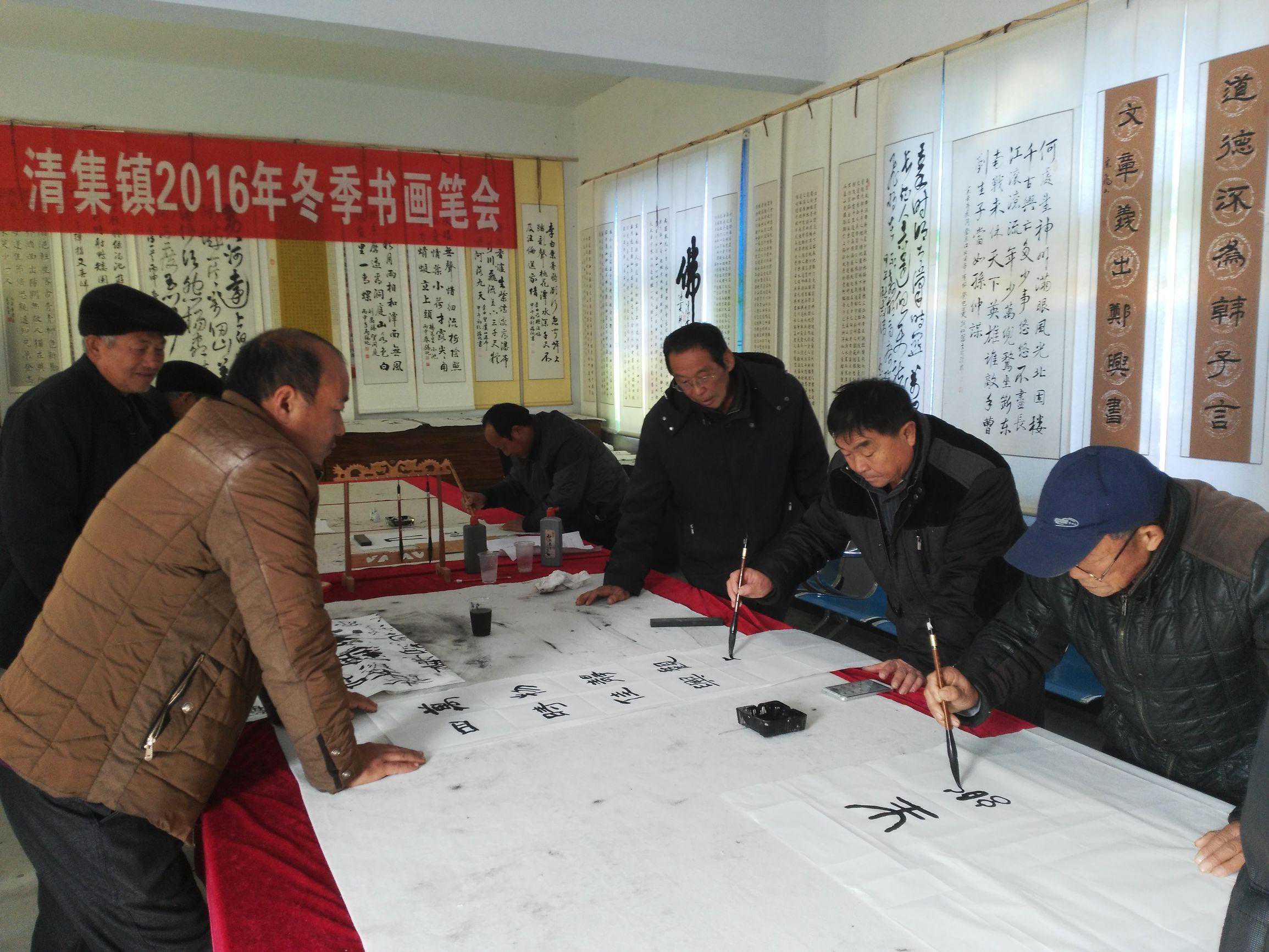 初寒乍暖的初冬上午,清集镇书画院洋溢着一阵阵欢声笑语。来至全镇的二十余名书画爱好者欢聚一堂。他们带着各自的书画作品相互切磋交流,有的挥毫泼墨,现场创作。