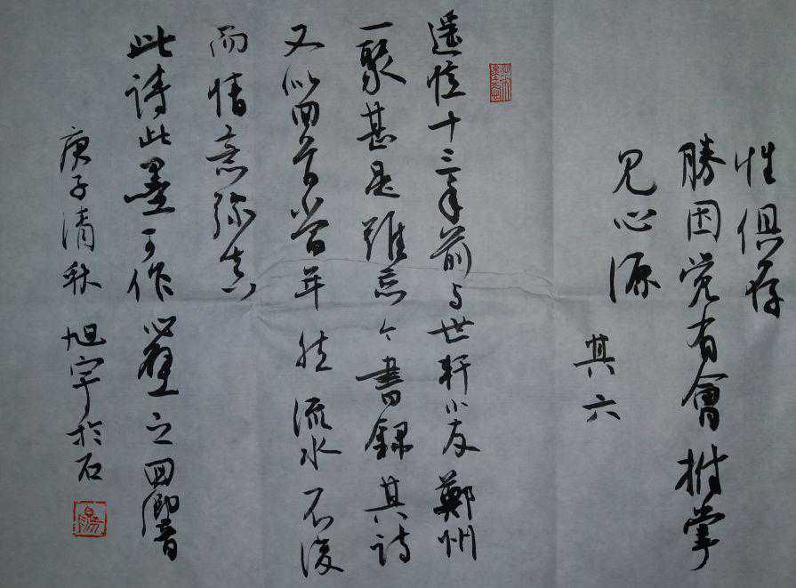 遥忆十三年前与世轩小友郑州一聚,甚是难忘。今书录其诗,又似回首当年,然流水不复而情意弥真。此诗此墨可作心壁之回响。