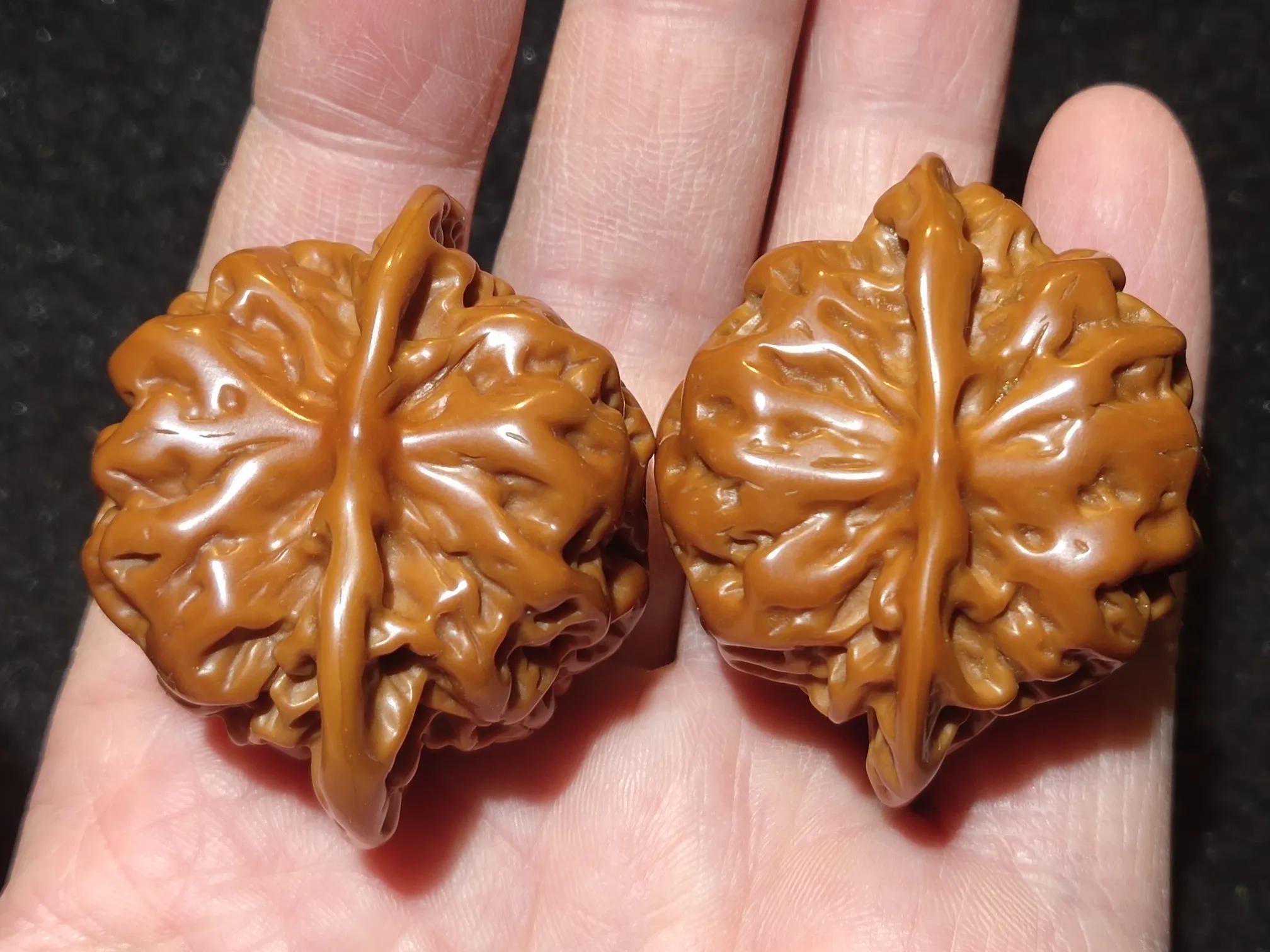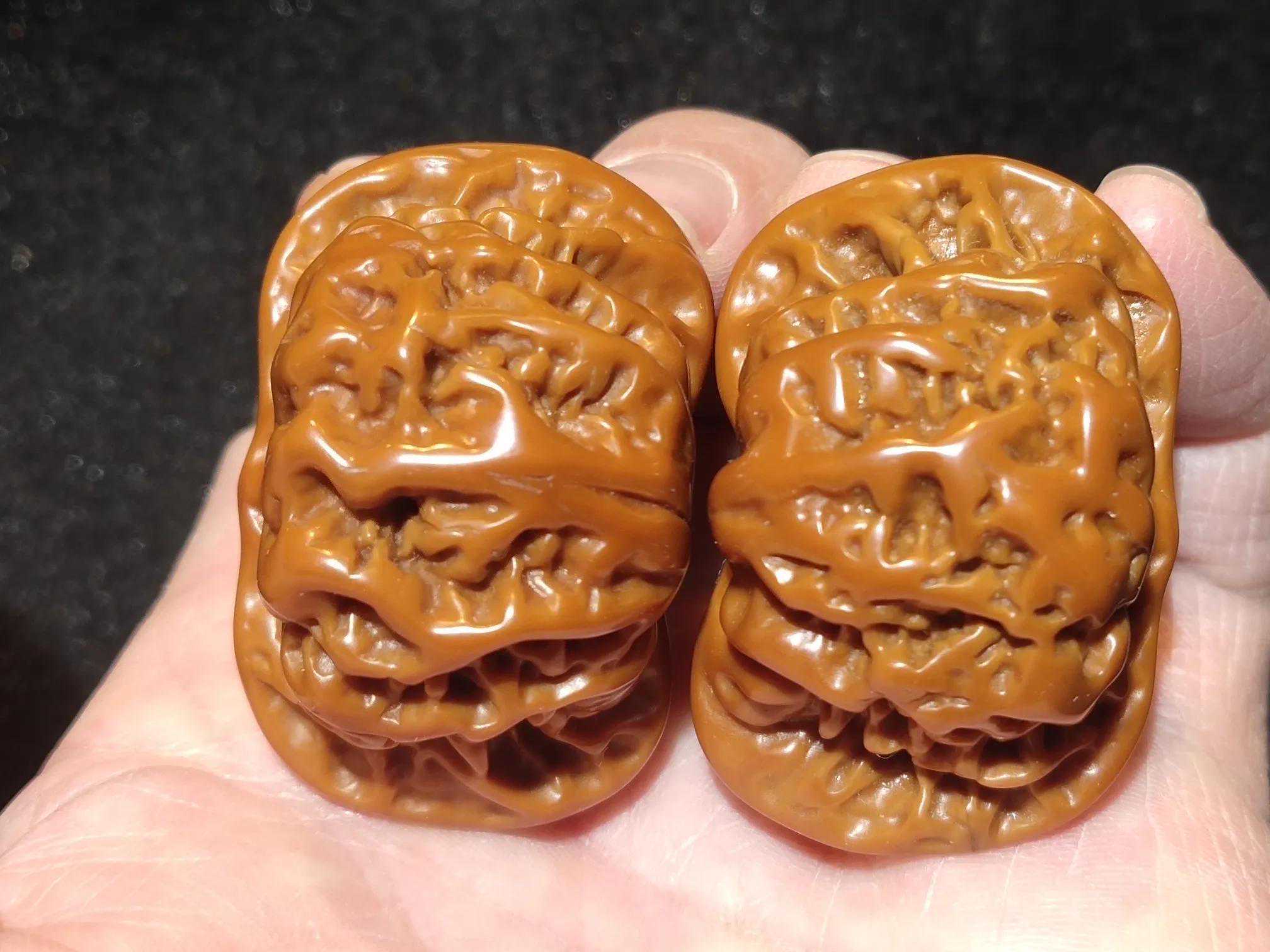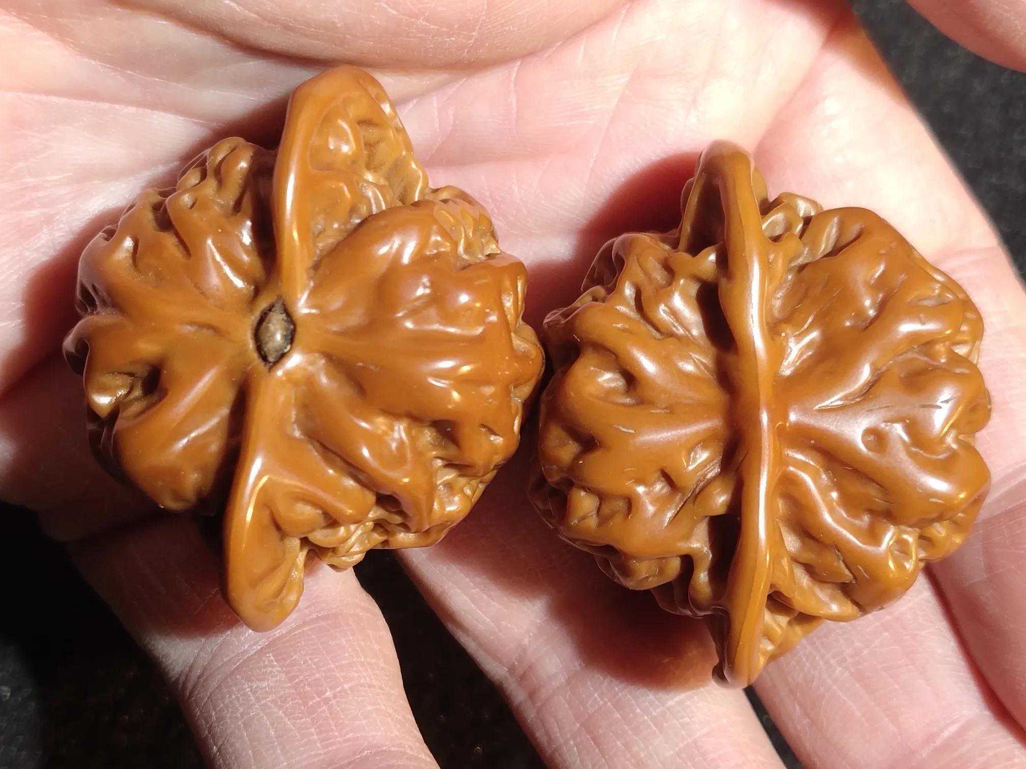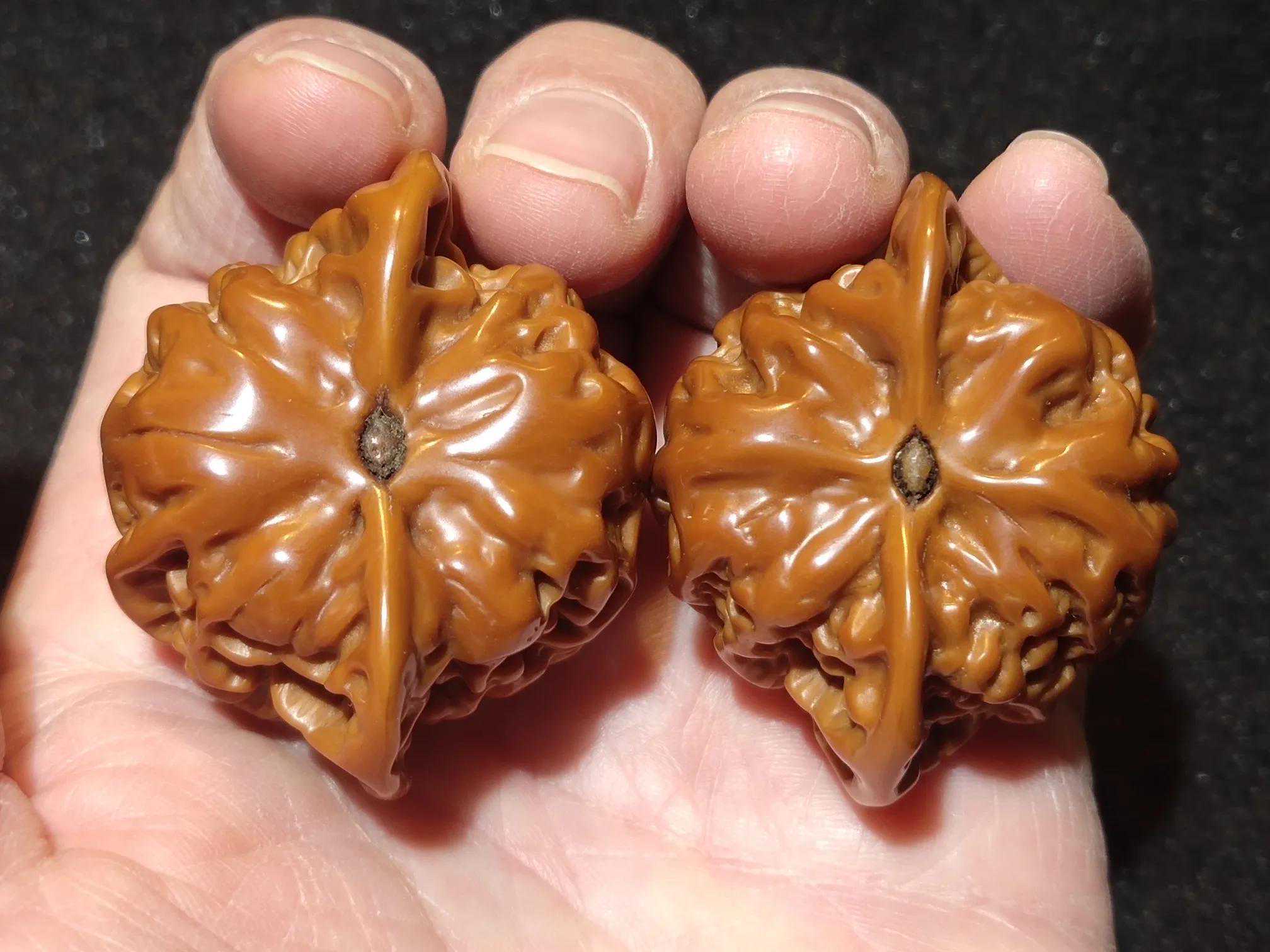 这对儿核桃应该是2015年左右的核桃当时流行矮桩的狮子头越矮越贵所以能上夹板的核桃基本上都给夹上了就连本身就是自然矮桩的盘龙纹狮子头也没放过核桃配好之后根据市场需求挑了一部分进行了抛光做旧处理几次搬家之后消失匿迹了挺长一段时间前几天收拾以前的货底给翻出来了得以重见天日这品相非常不错超矮桩的盘龙纹这么多年过去了一点儿色差都没有包浆显得也很厚重现在的核友已回归理性核桃也都玩儿自然原桩的多了所以这种货以后可不好找了现在能遇到也算的上是一种缘分吧[机智]