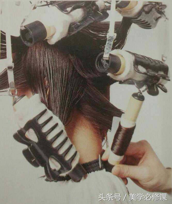 陶瓷烫卷杠过程图解:如下图,刘海向前45°螺旋两圈。