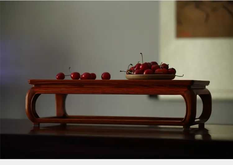 拦水线通常在酒桌上使用,酒洒不致衣襟滴脏。此小几设拦水线,或因炕上使用之故。炕几属矮型桌案,通常顺着墙壁置放在炕的两头,上面可以摆置小件文玩或用具。据王世襄先生的《明式家具研究》记载,这样的陈设在故宫原来的陈列室中是屡见不鲜的。王世襄先生曾任故宫博物院陈列部主任,对此颇为熟知。他在文物研究上一向把实物放在首位,面对实物再作一丝不苟的深入研究,而不泛论家具。王世襄先生收藏此件小几,盖出于其所具备的研究和观赏价值。