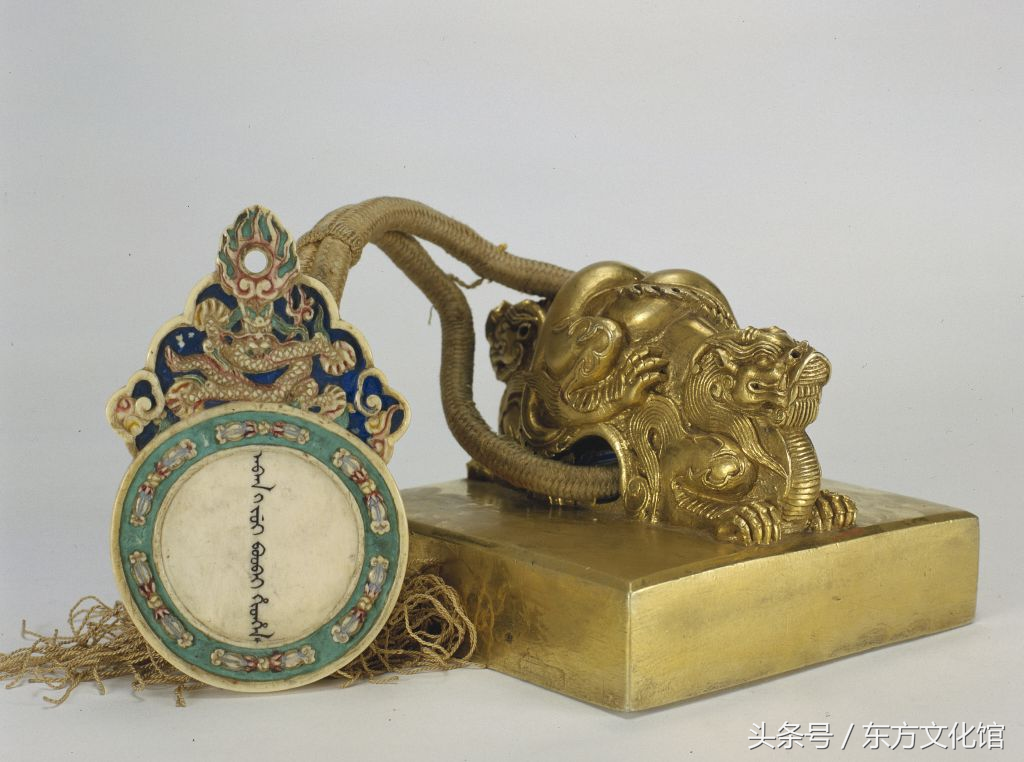 金质,交龙纽,附系黄色绶带,满汉文篆书。