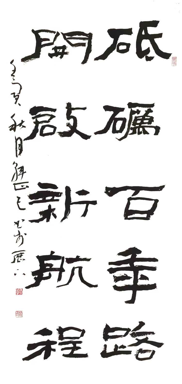 《对联》下联作者:耿世彪,中国书协会员、济南市工商联文联副主席、济南市工商书协主席、天桥区书协副主席兼秘书长