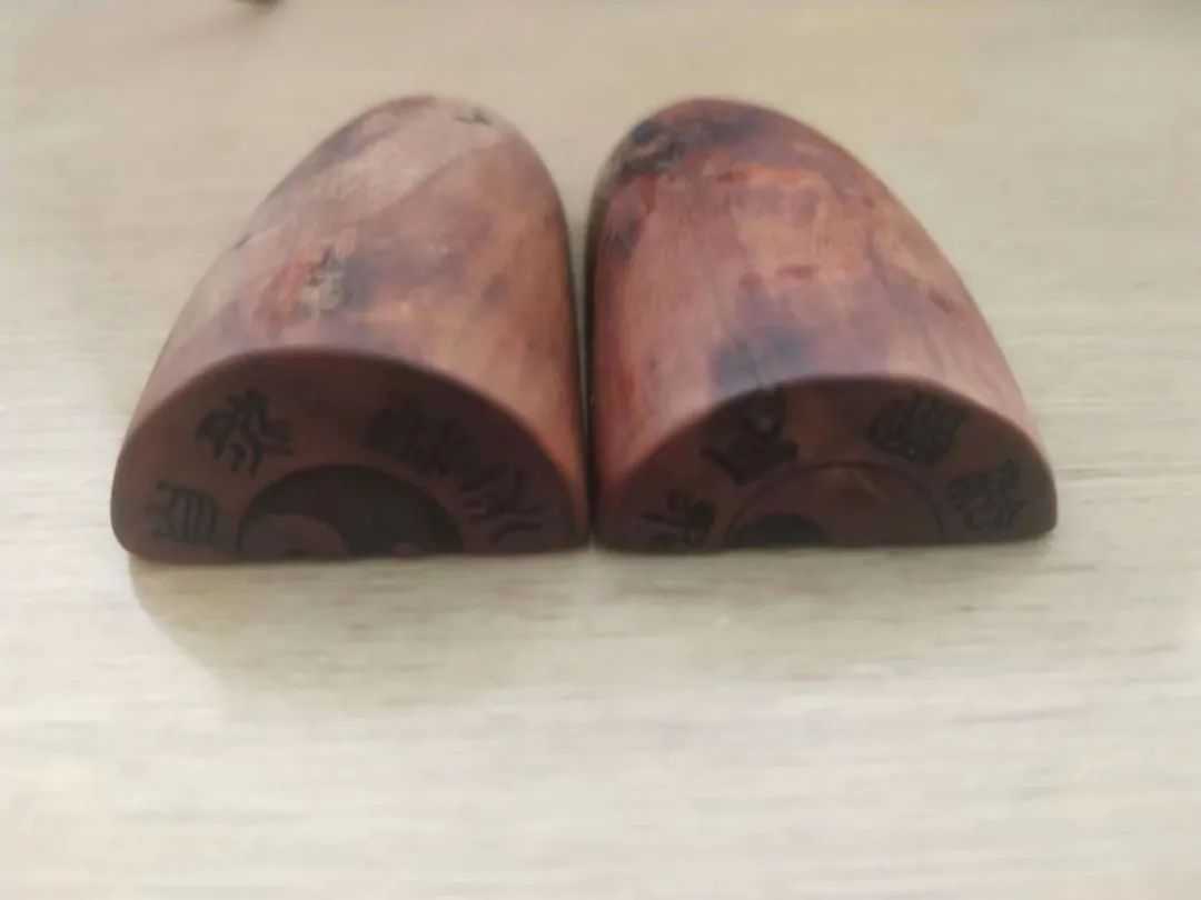 羊角圣杯(两片为一副)每片有一个平面,分别刻有八道和九道半圆凹槽(为阴),另一面为半圆凸形(为阳)两片合拢象似小羊角,象徵九宫八卦,多为道家使用。