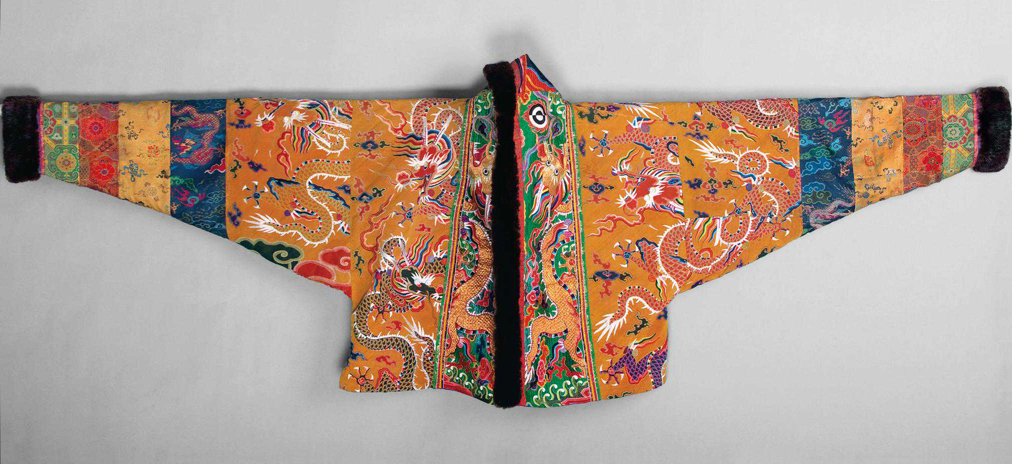 明代姜黄地纳纱绣五彩云龙纹上衣