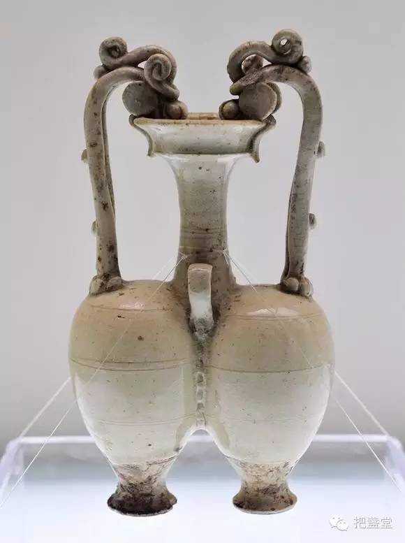 其中双龙柄壶器形独特,天津地区曾发现一件传世的双身龙柄壶,底阴刻“此传瓶,有□”,表明当时此类器物可能称为传瓶。一件西安何家村窖藏出土的一件银鎏金舞马衔杯纹仿皮囊壶是皮囊式壶的代表。