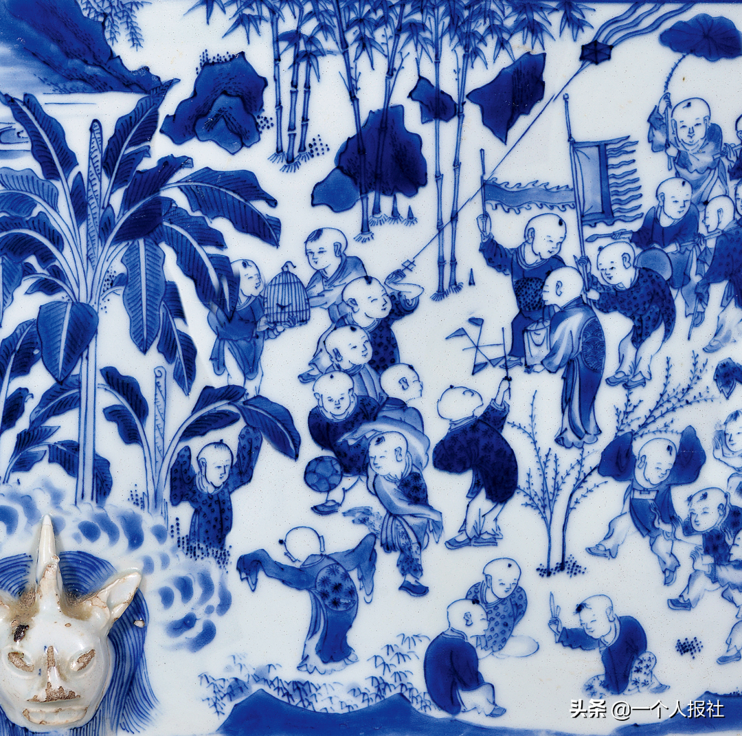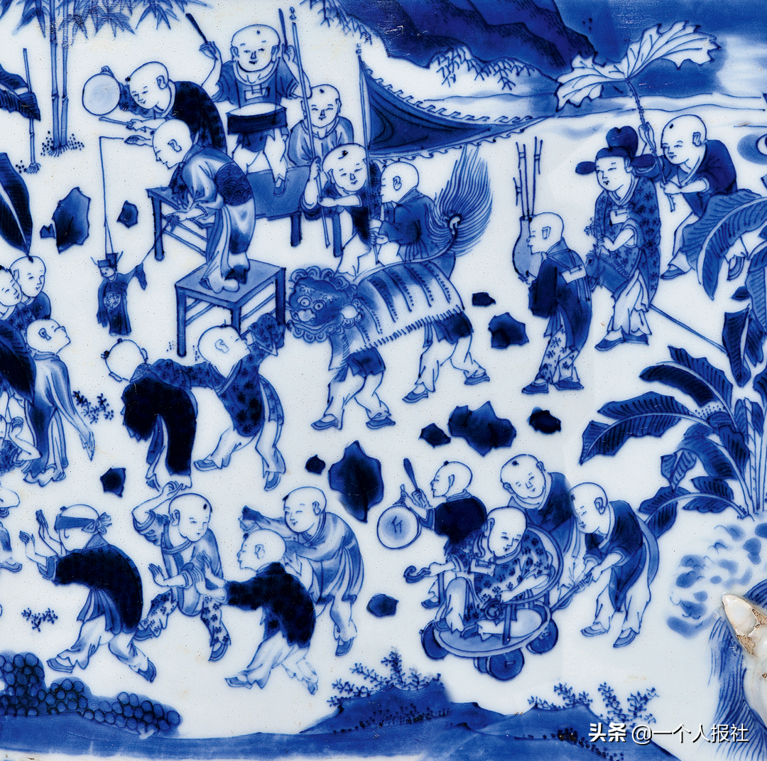明崇祯青花百子图大笔海