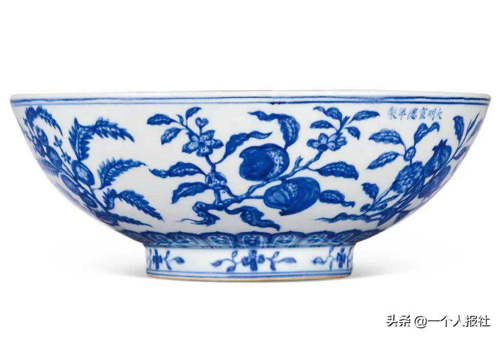 明宣德青花折枝花果纹大碗