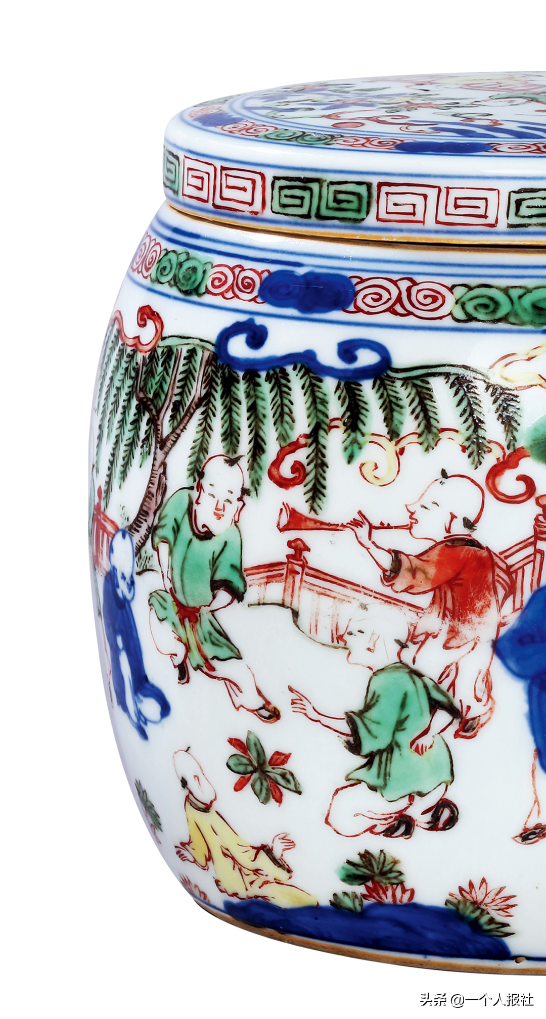 明万历青花五彩婴戏围棋罐