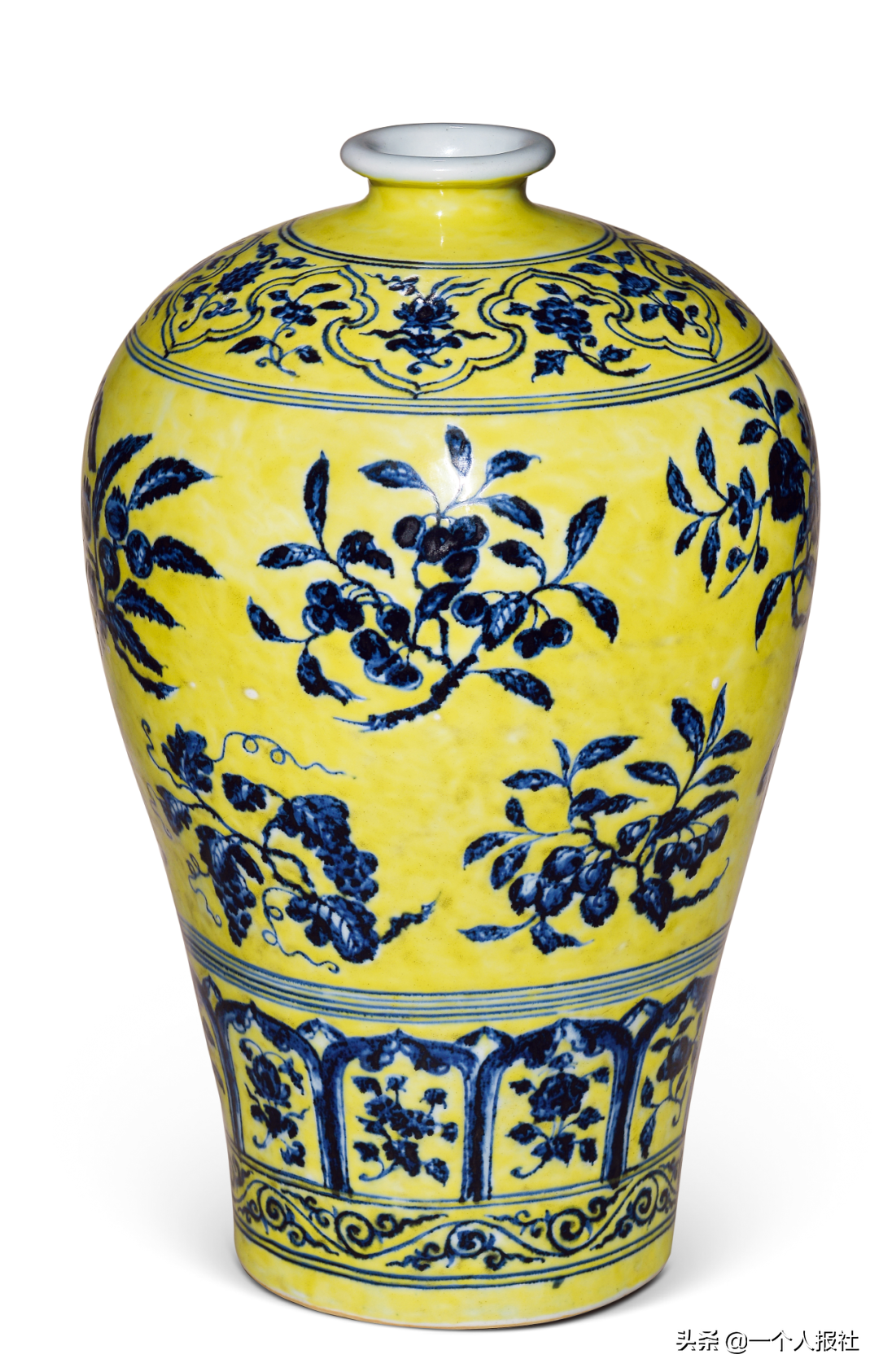 右图:明永乐青花如意垂肩折枝花果纹梅瓶