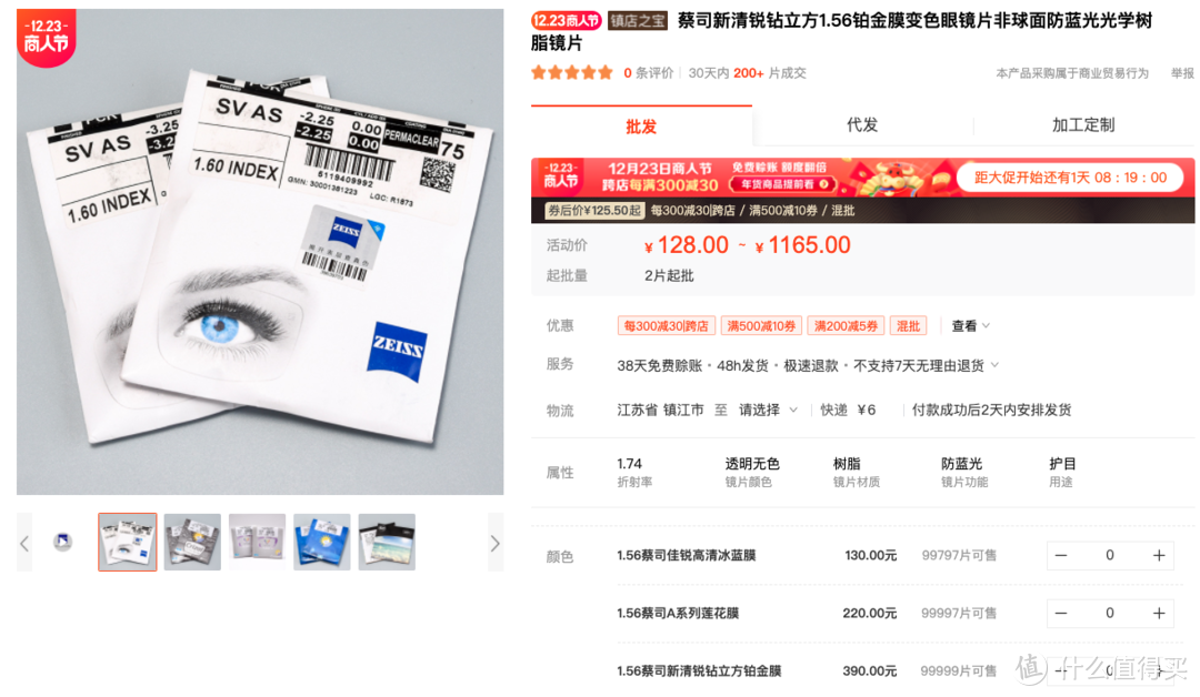 蔡司新清锐钻立方1.56铂金膜变色眼镜片