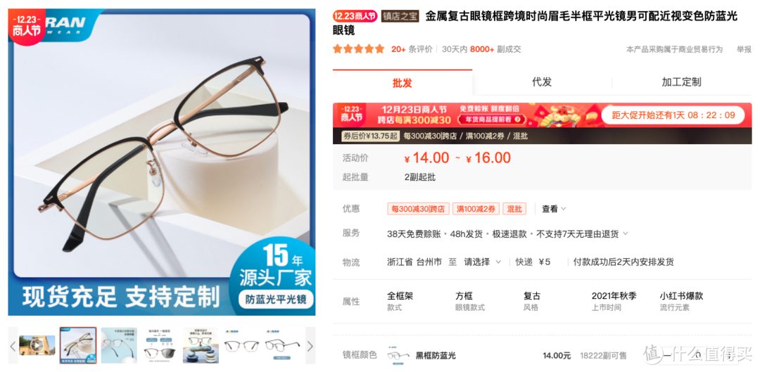 入围2021年金牌制造商榜单,阿里巴巴认证超级工厂。这家主要做眼镜框产品,价格非常便宜,有各种材质可以选择。