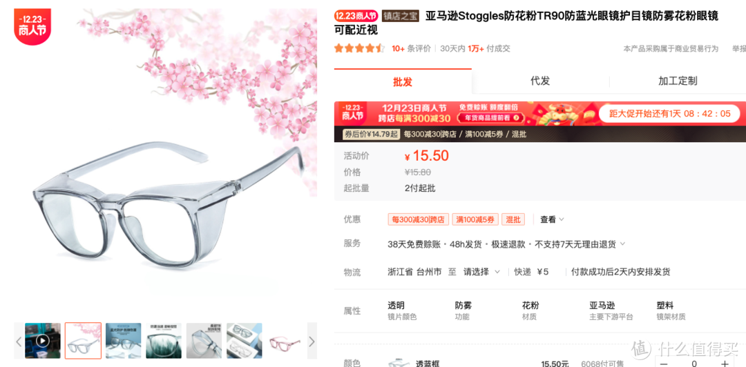 亚马逊Stoggles防花粉TR90防蓝光眼镜护目镜