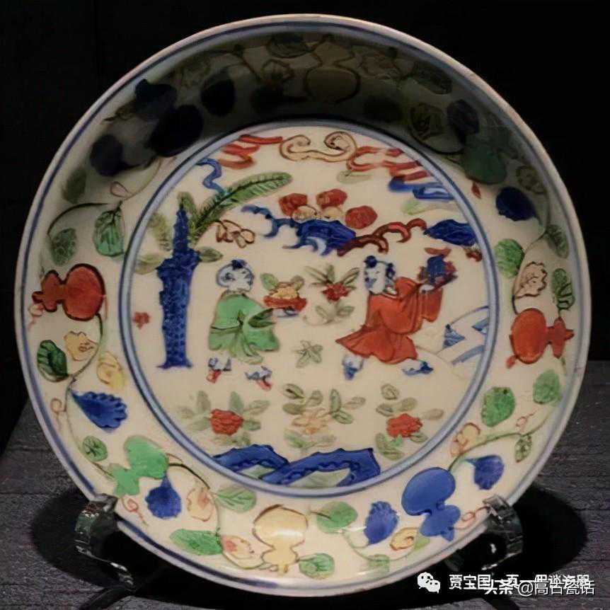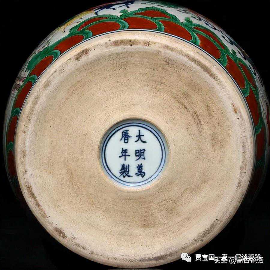 下边发的一件是《宋元瓷器》学习群点评藏友的藏品。万历五彩,其胎质:质坚致密。釉色:釉面乳白莹润。彩色色调:对比强烈。大红大绿,浓艳凝重;常用釉下青花作局部图案和勾勒轮廓,彩色常溢漫出线而使纹饰显得模糊。