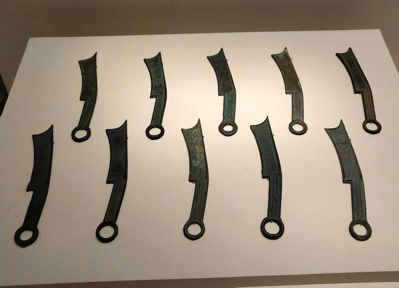 因此,在交易过程中使用刀兵之类实用品来代替货币成为一种便捷的解决方式。人们将金属制成形状各异的实物,如铲子、刀子等,作为交换媒介,称为“刀币”。